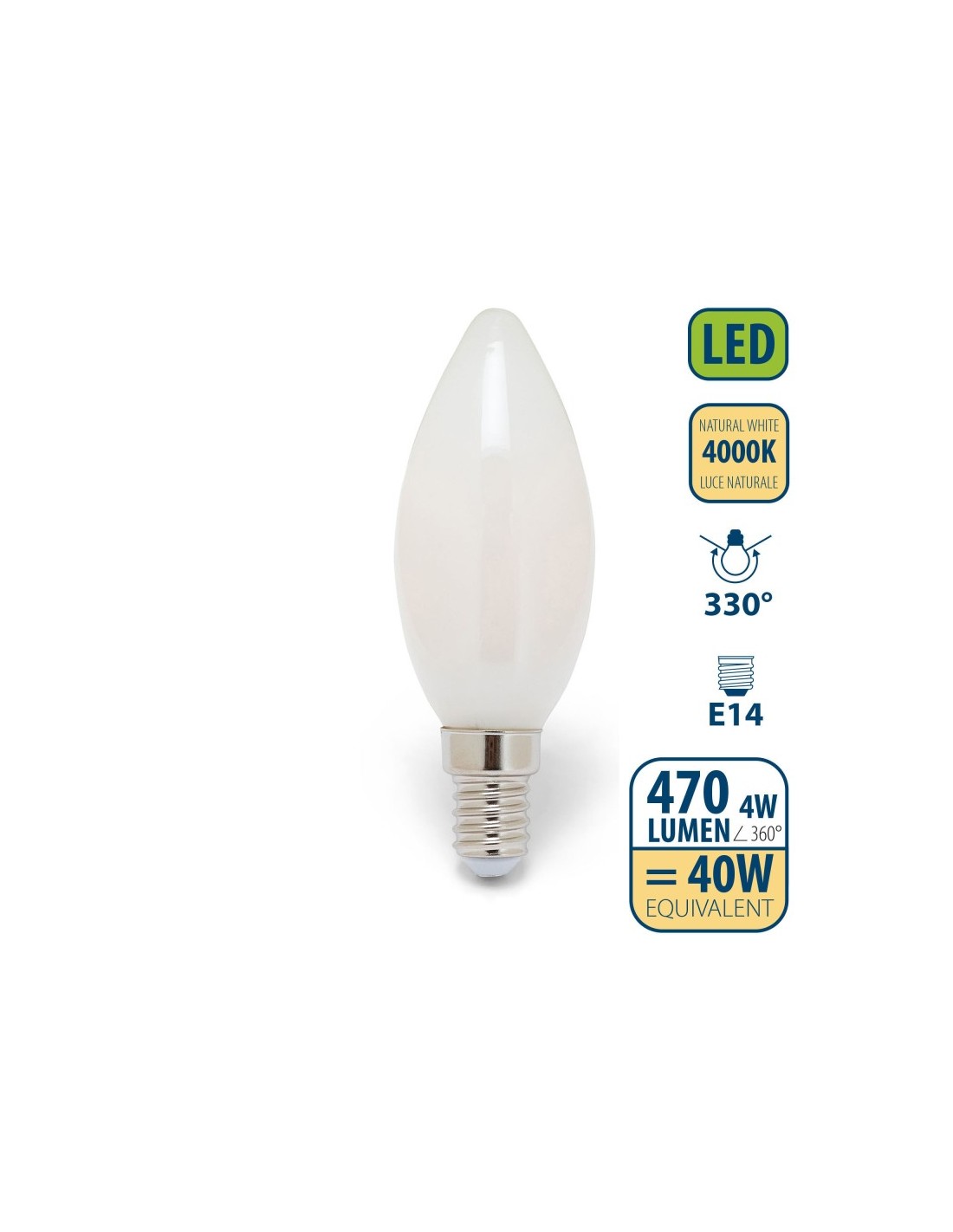 Consegna 2-3 giorni Lampadine Lampadina VELAMP OLiva E 14 6 W 4000° K VLP/LB306M40K 1,85 € Aggiungi al carrello
