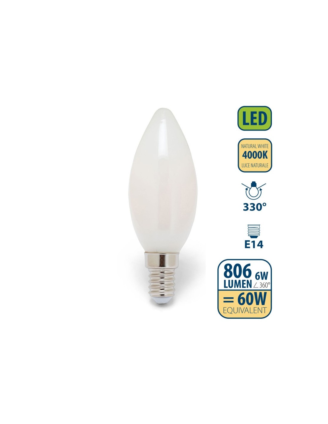 Consegna 2-3 giorni Lampadine Lampada LED Filamento Candela Bianca E14 6W FE/LUXABE14C6M 3,85 € Aggiungi al carrello