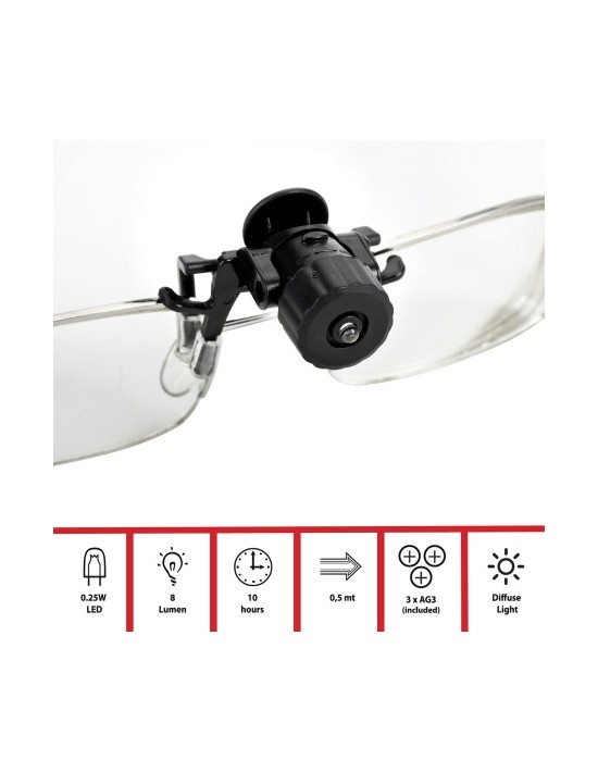 Comoda: si aggancia dappertutto grazie alla comoda clip. Nata per essere fissata sugli occhiali (con la luce che seguirà sempre il vostro sguardo), si può comunque fissare da altri elementi come cappelli, libri, ringhiere... Grazie al LED di ultima generazione da 0,25W, avrete una luce direzionale che vi permetterà di leggere o scrivere al buio con entrambi le mani libere e senza disturbare il vostro partner. Funziona con 3 pile AG3 (fornite). I supporti della clip sono ricoperti di una plastica trasparente che eviterà di graffiare il supporto (occhiali...) Si comanda con una sola mano. Piccola, la potrete portare dappertutto con voi.